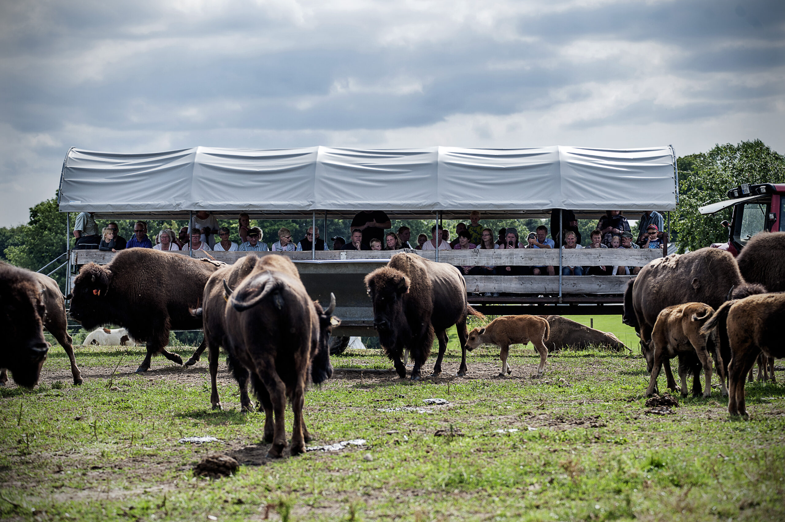 Kom med på guidet tur ud blandt de store bisonokser. Her fortæller en af vores dygtige guider om bisonokserne, deres adfærd og sjove historier fra en anderledes hverdag.