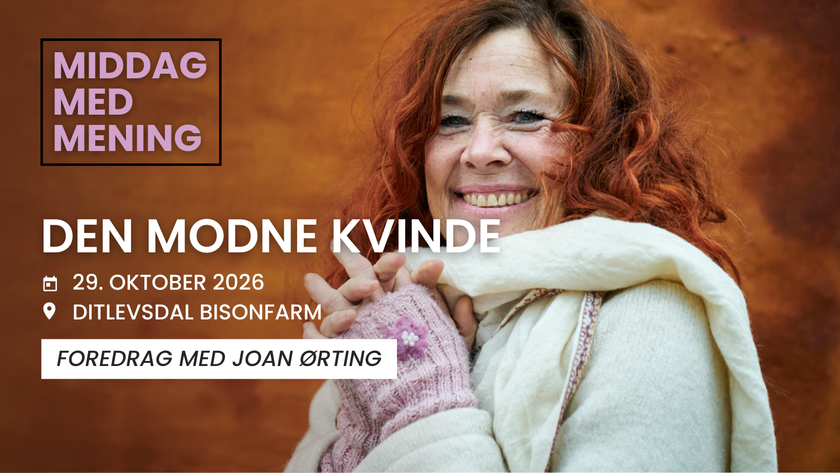 Kom til en inspirerende aften med Joan Ørting, hvor hun sætter fokus på overgangsalderen, kvindeliv og styrken i den modne kvinde