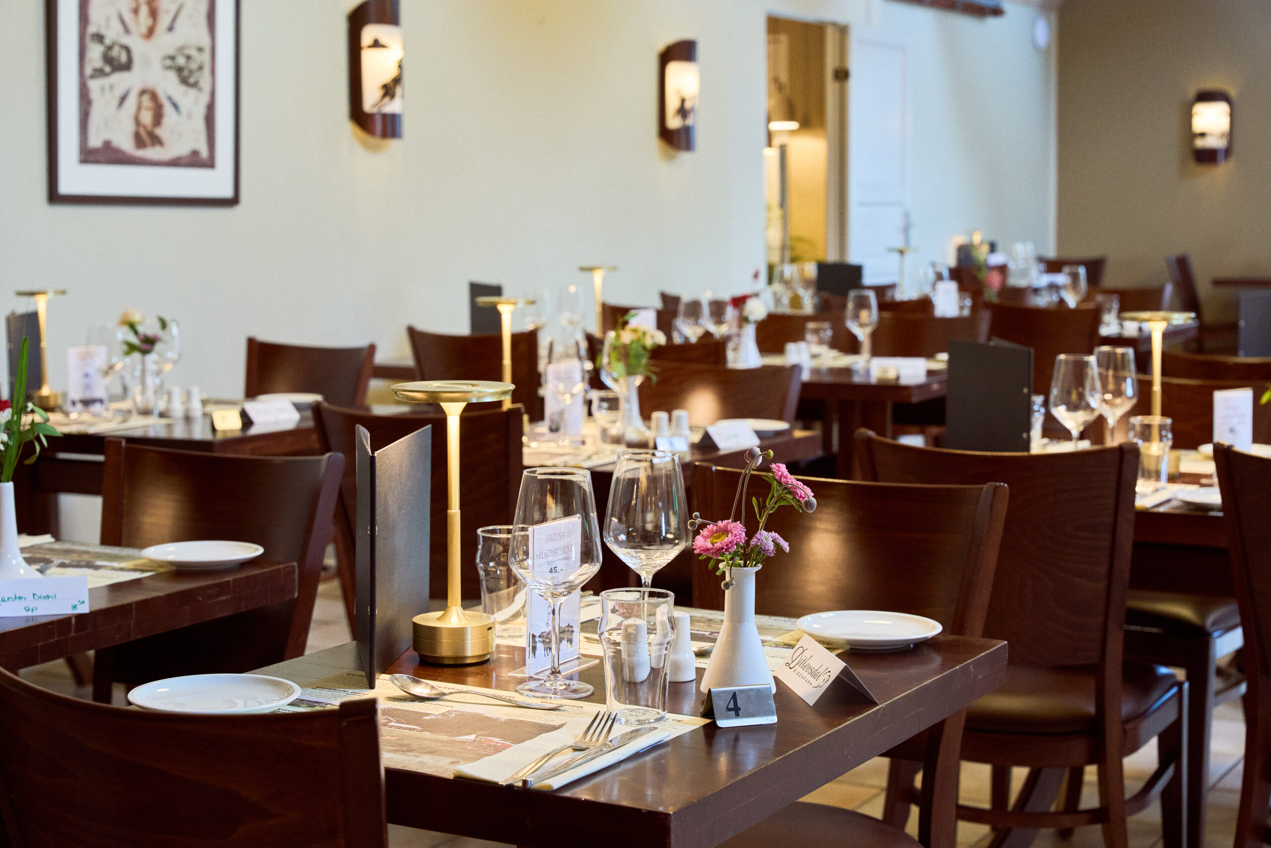 Har nogen i selskabet problemer med at gå på trapper, bedes I venligst give os besked, da spisningen kan forgå på 1. salen i restauranten.