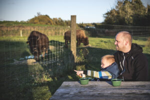 Nyd roen, dyrene og naturen i vores hyggelige shelters, der helt tæt ved bisonindhegningen.